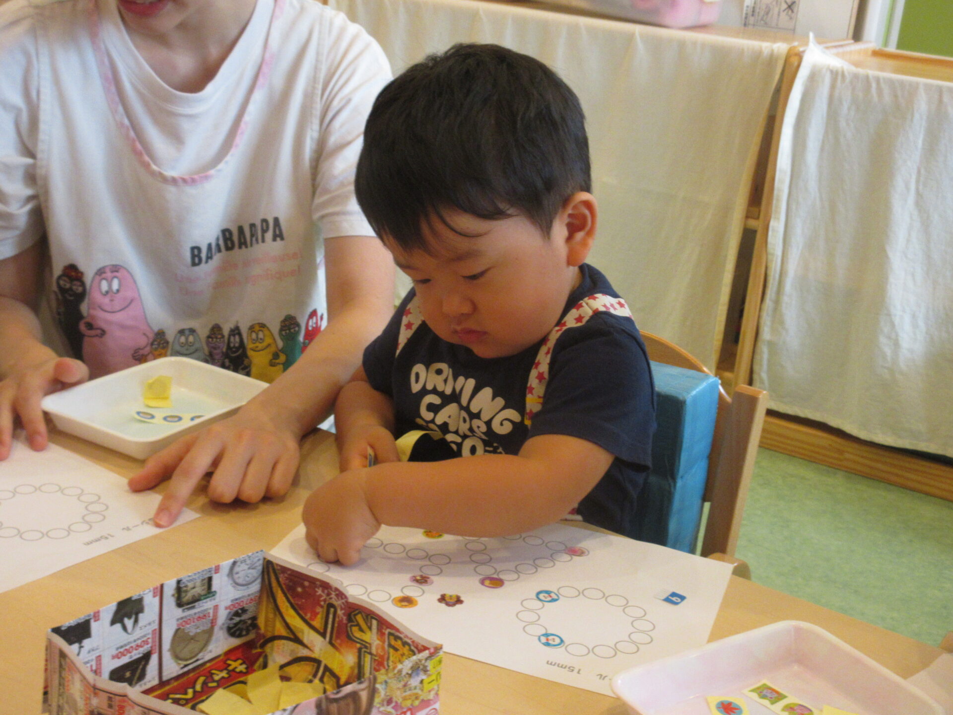 ペタッ!夢中でシール貼り