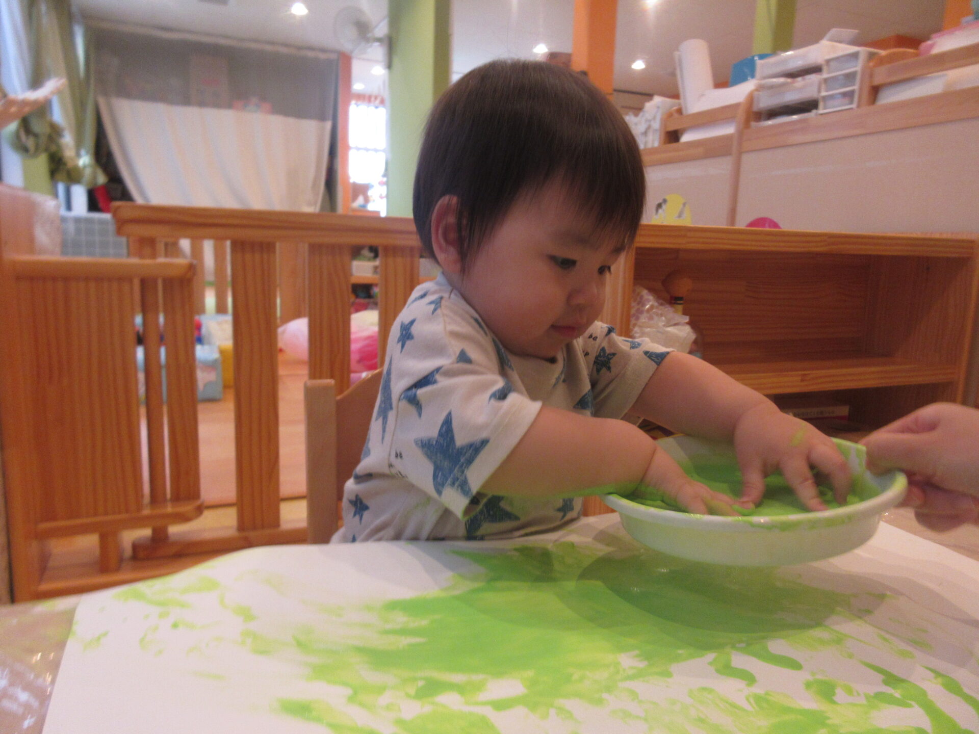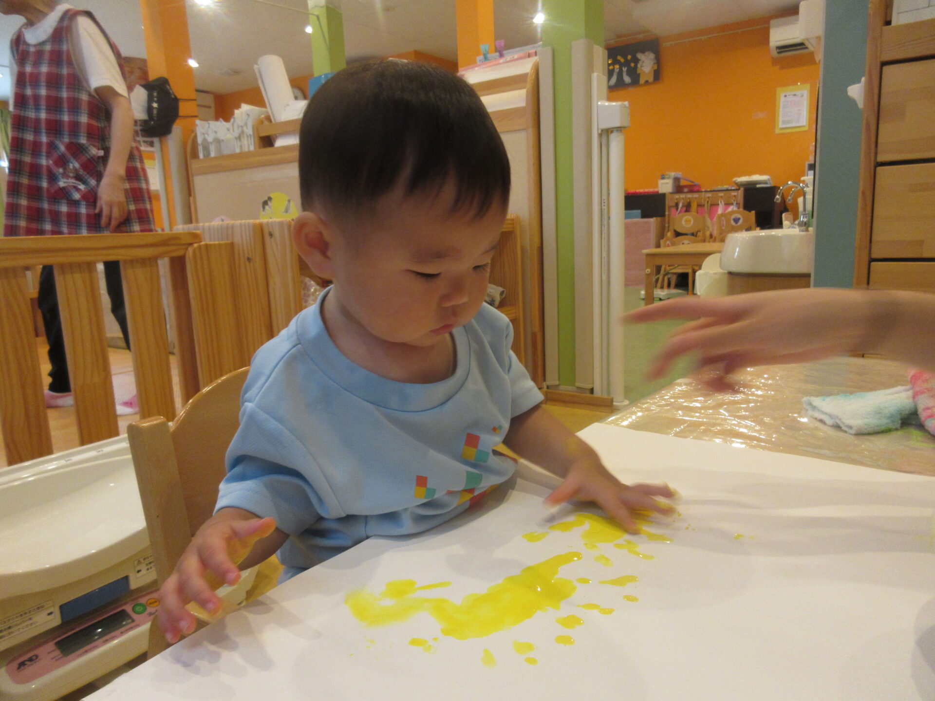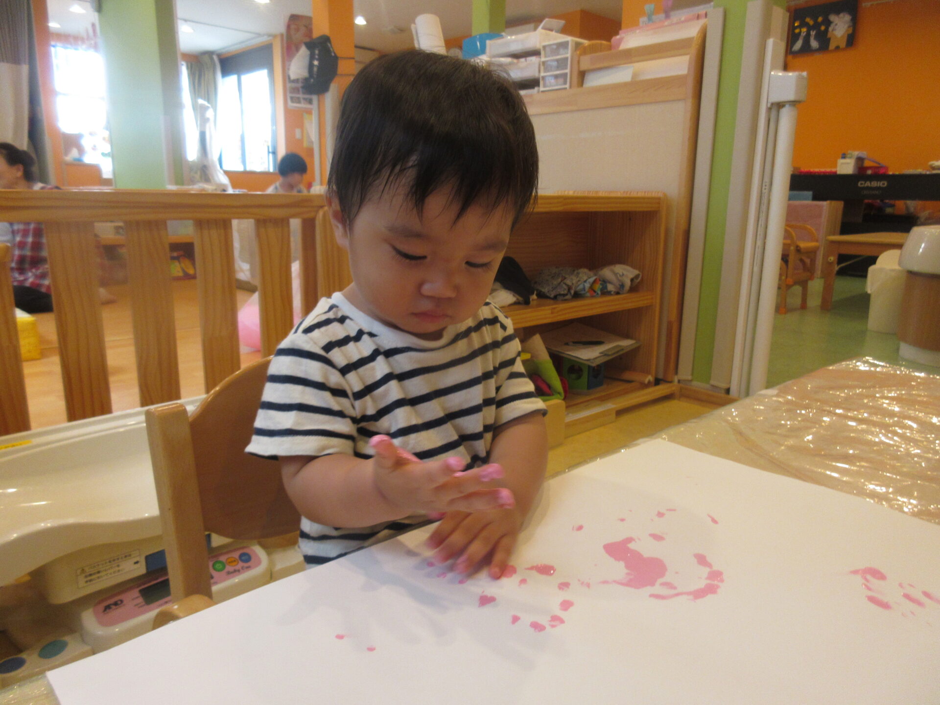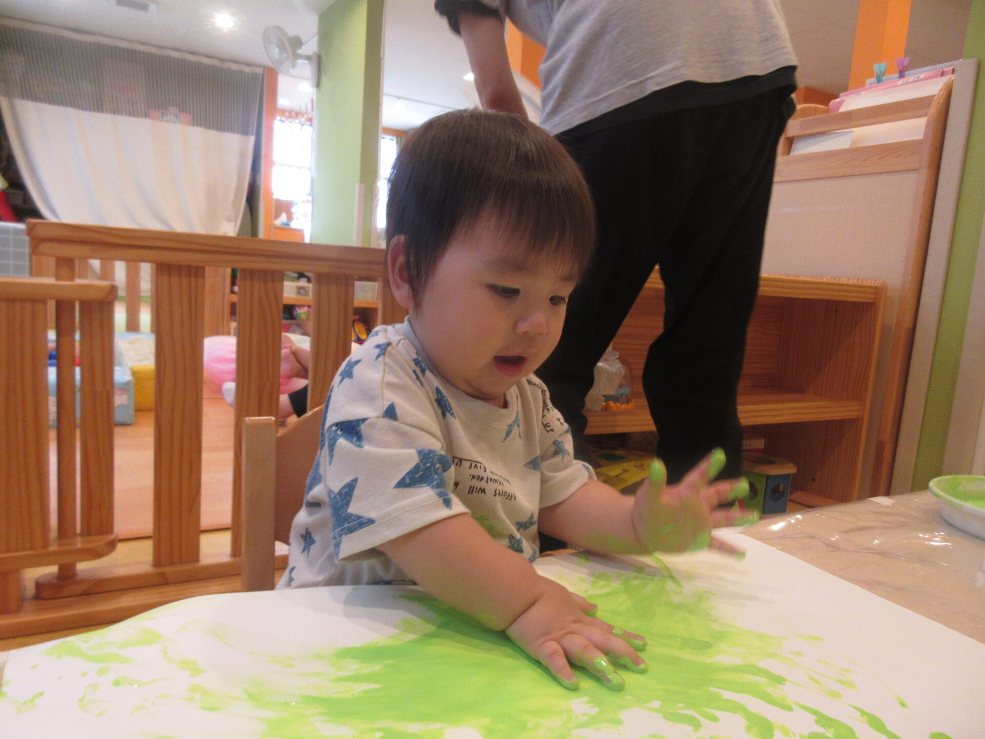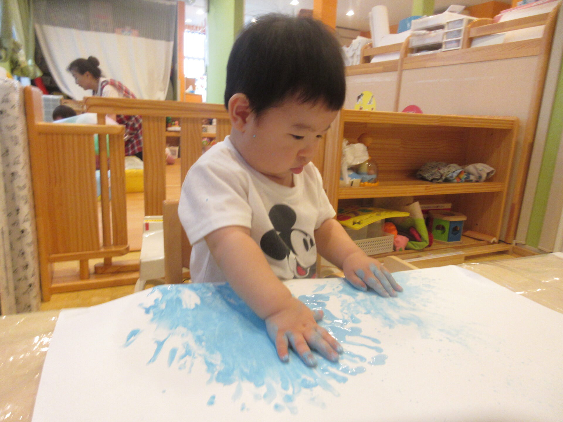 絵の具を手で塗り広げてみたり、ペタペタした感触を楽しんでいましたよ♪