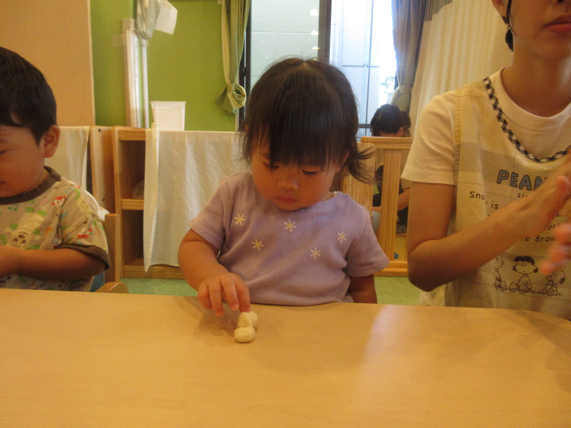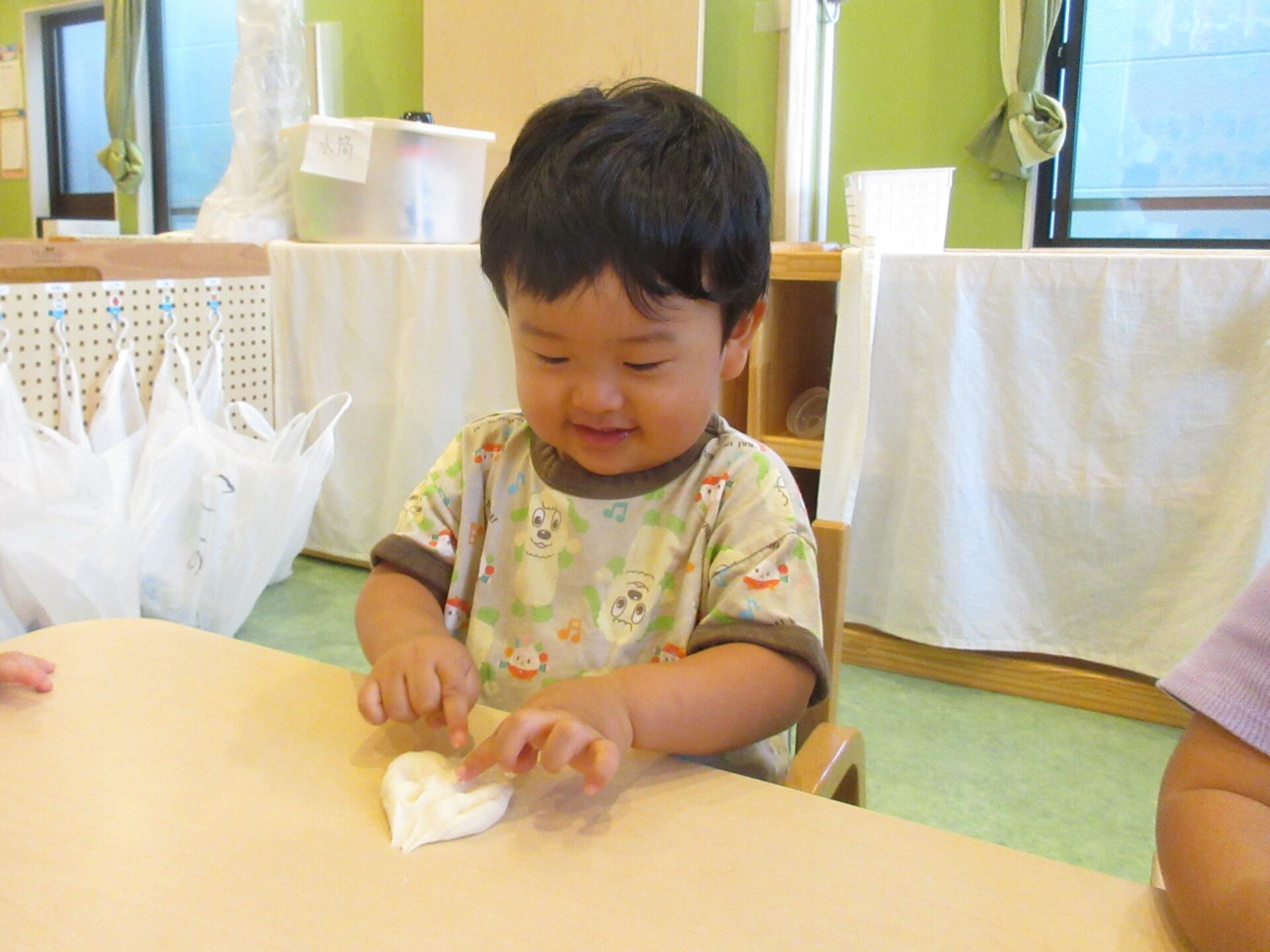 今回はねんどでしたが、製作や戸外遊びなど、遊びを通して、いろいろな感触があることを伝えていきたいと思います!