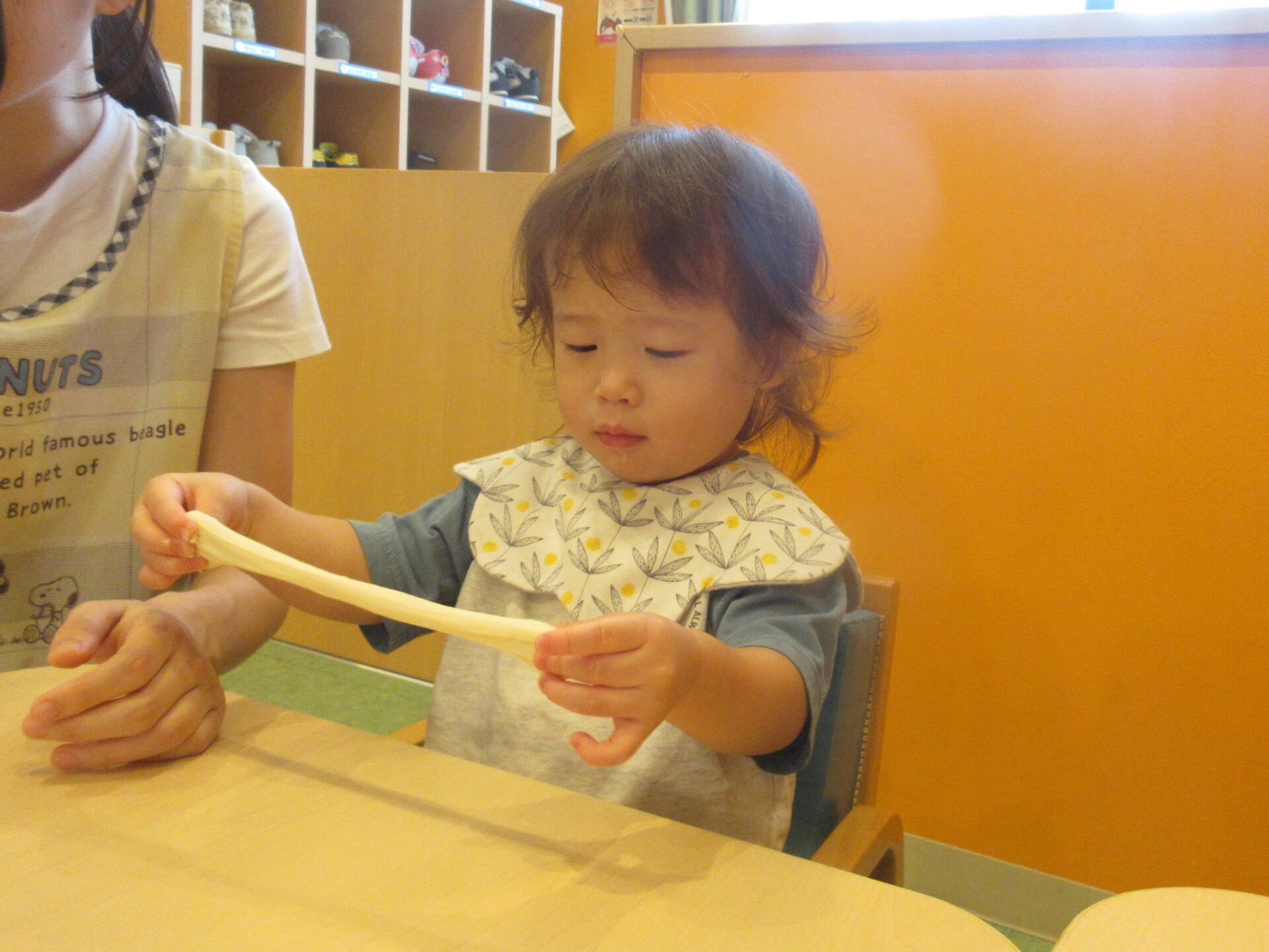 ねんどが伸びるのがわかると、両端を持って「びよ~ん!」と伸ばして楽しむお友だちもいましたよ♪