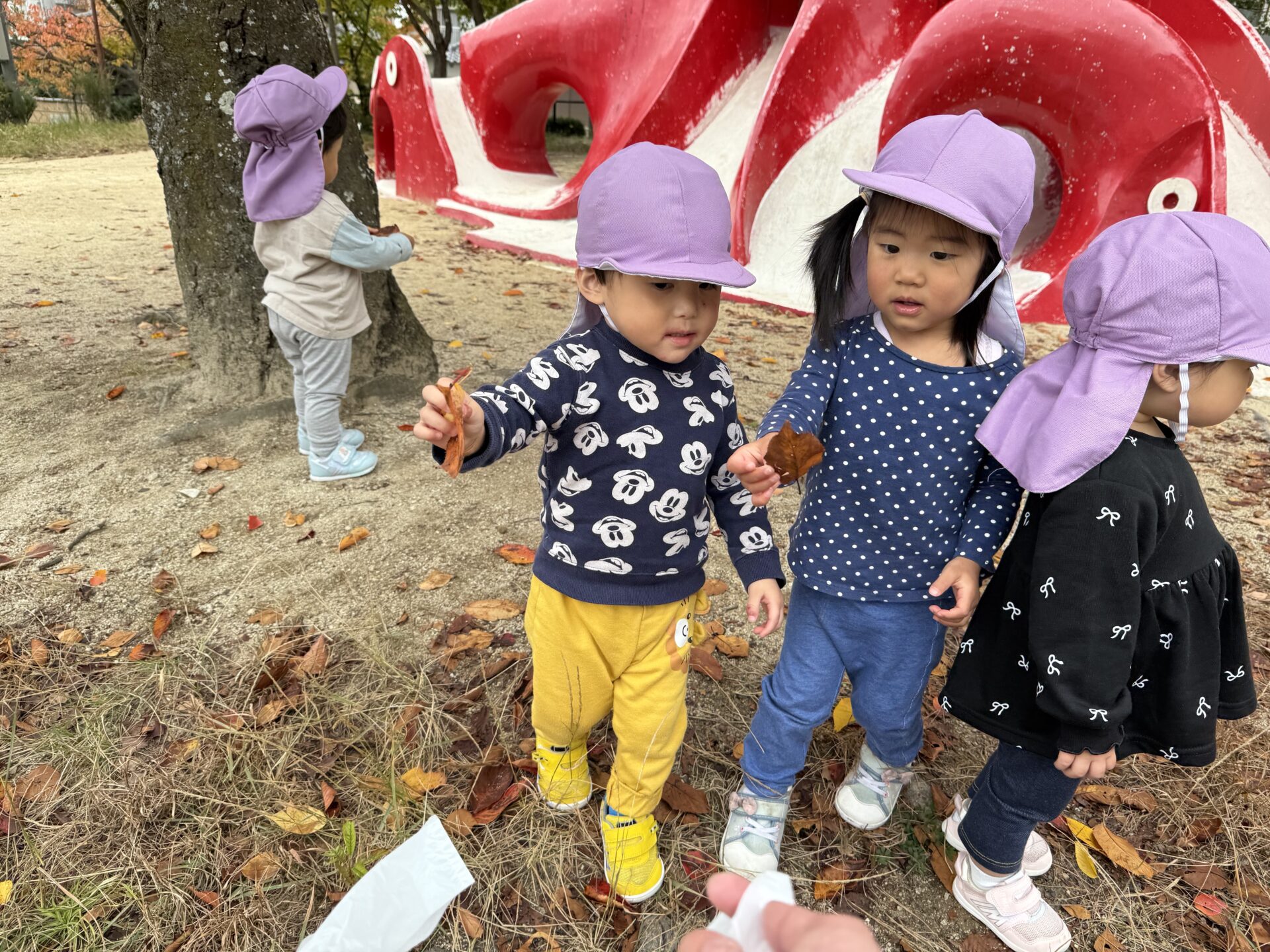 落ち葉を見つけると「あったよ~!」と、嬉しそうな声が聞こえました。