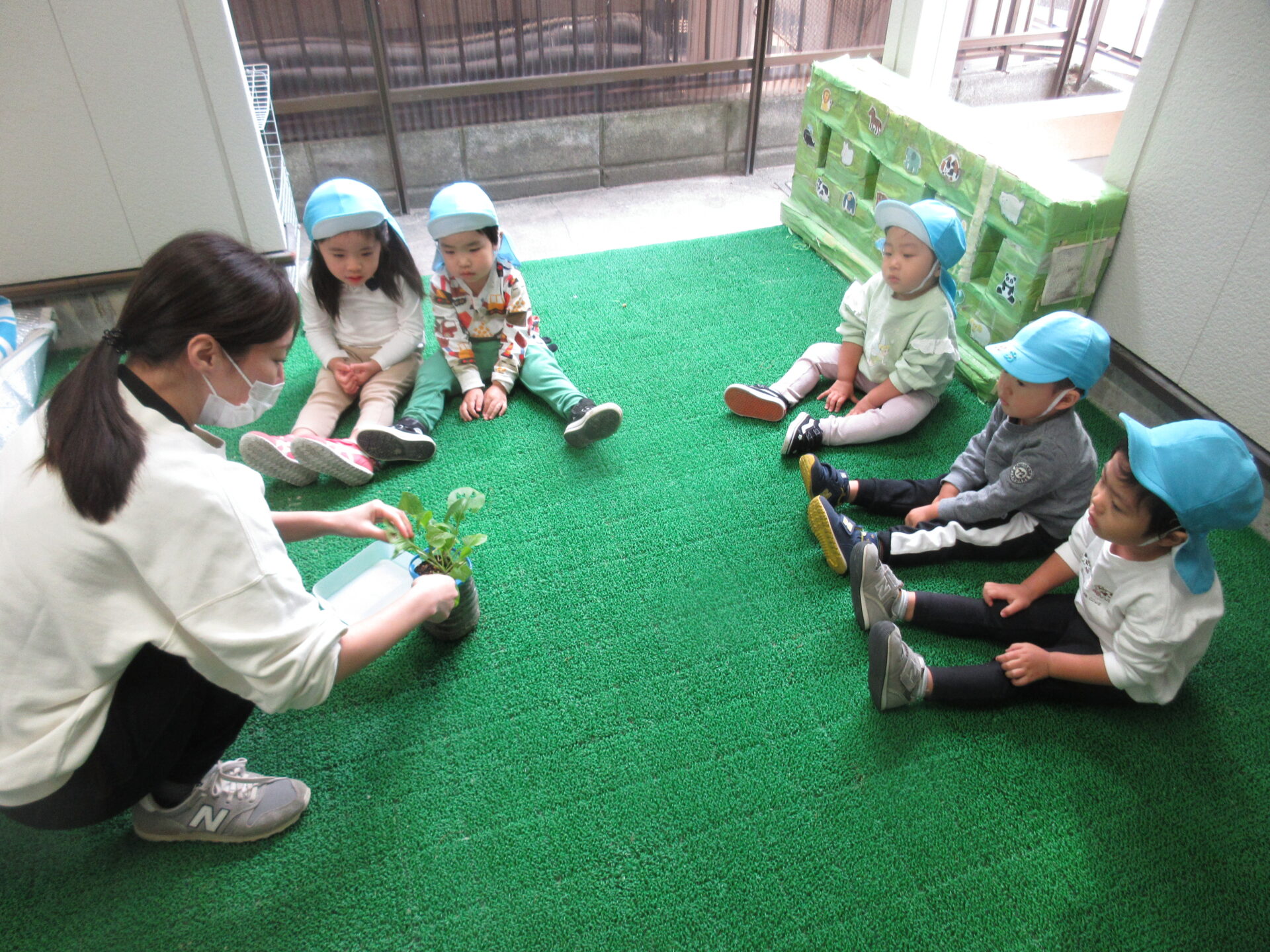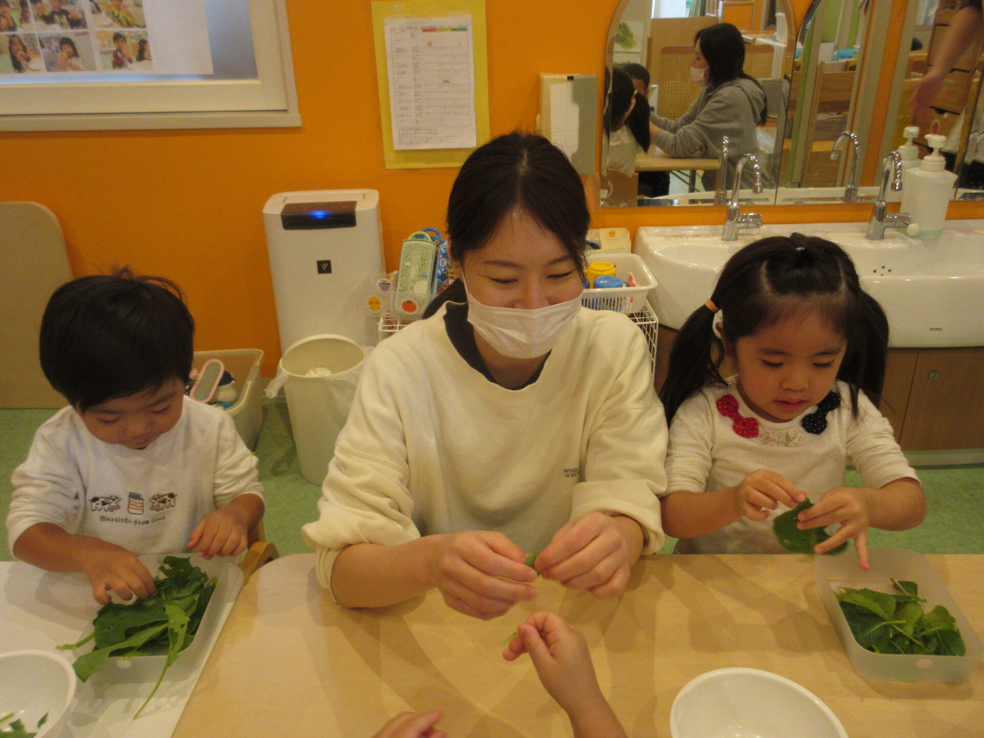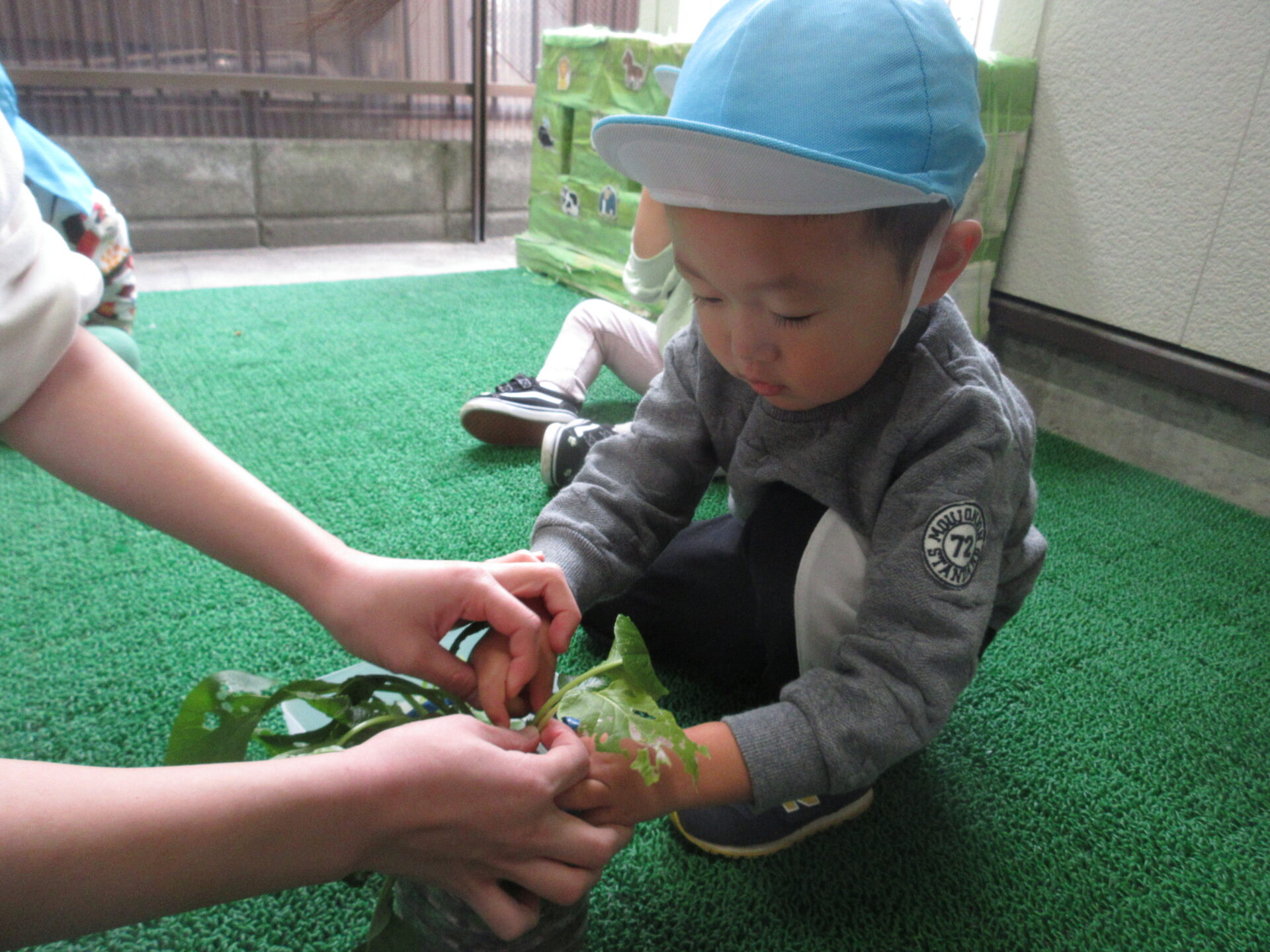 保育者の説明の通り、下の方から上手に茎を折って採ってくれました✨
