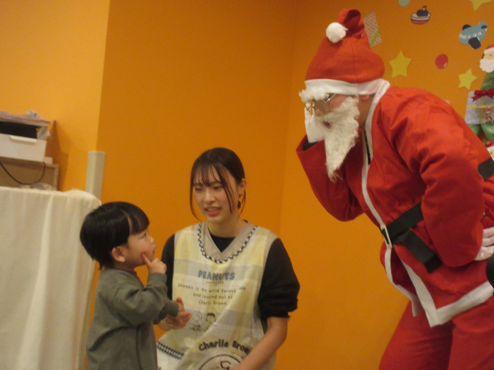少し恥ずかしかったけど「サンタさん、どこからきたの?」「好きな食べ物なぁに?」「何歳ですか?」