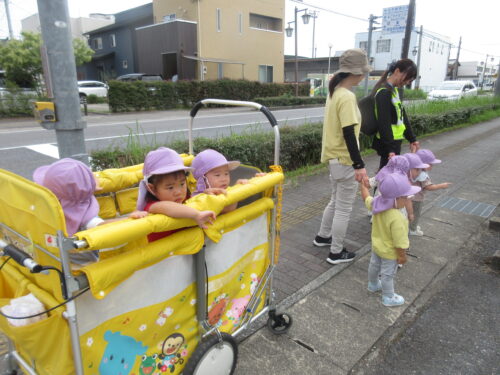 なので、園の玄関から出る際には、お友だちや保育者と、しっかりと手をつないでから出ていますよ。