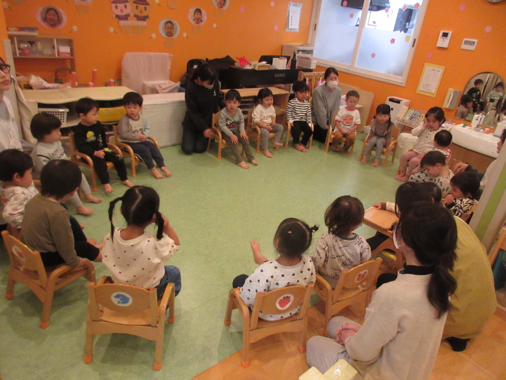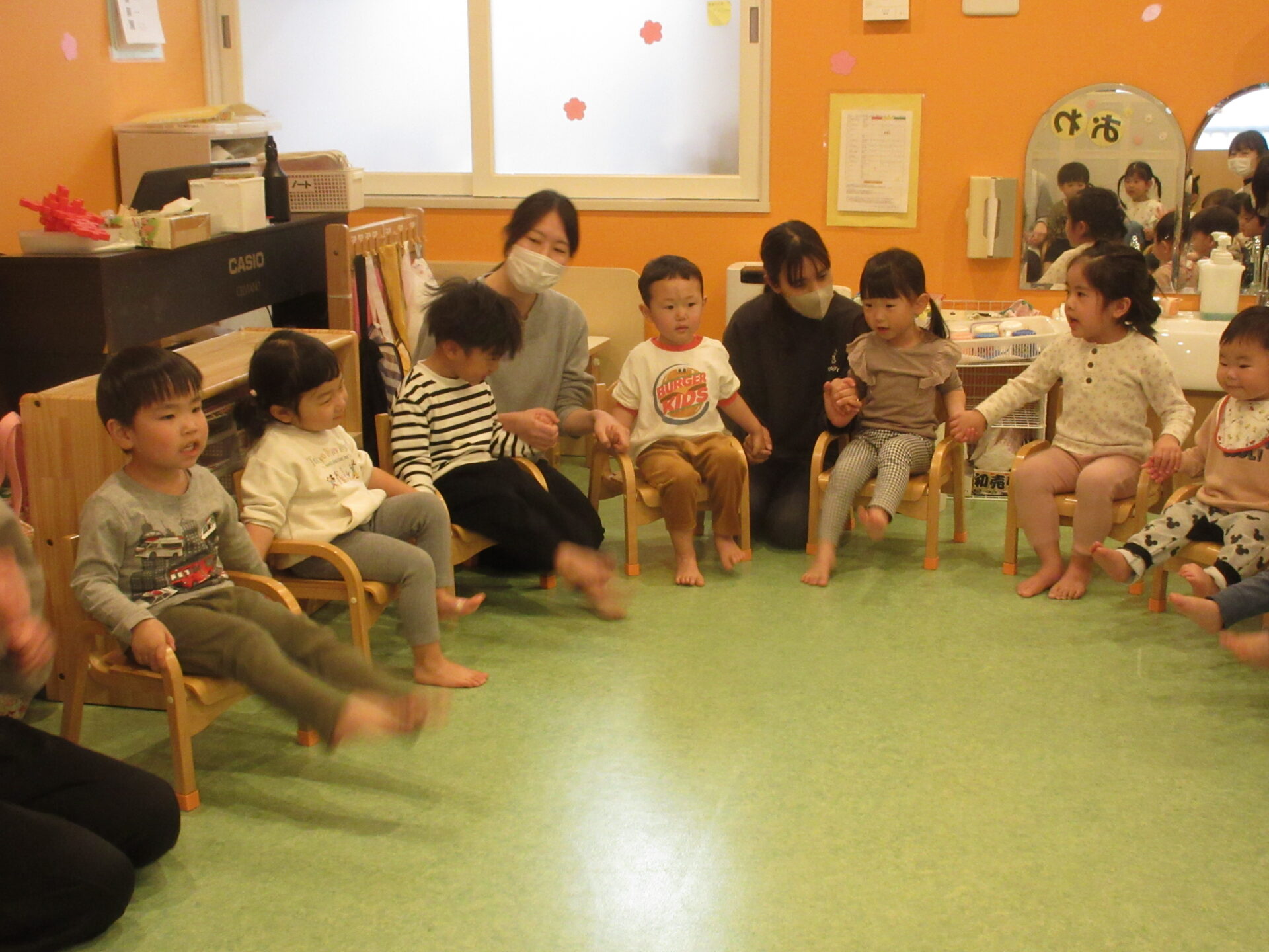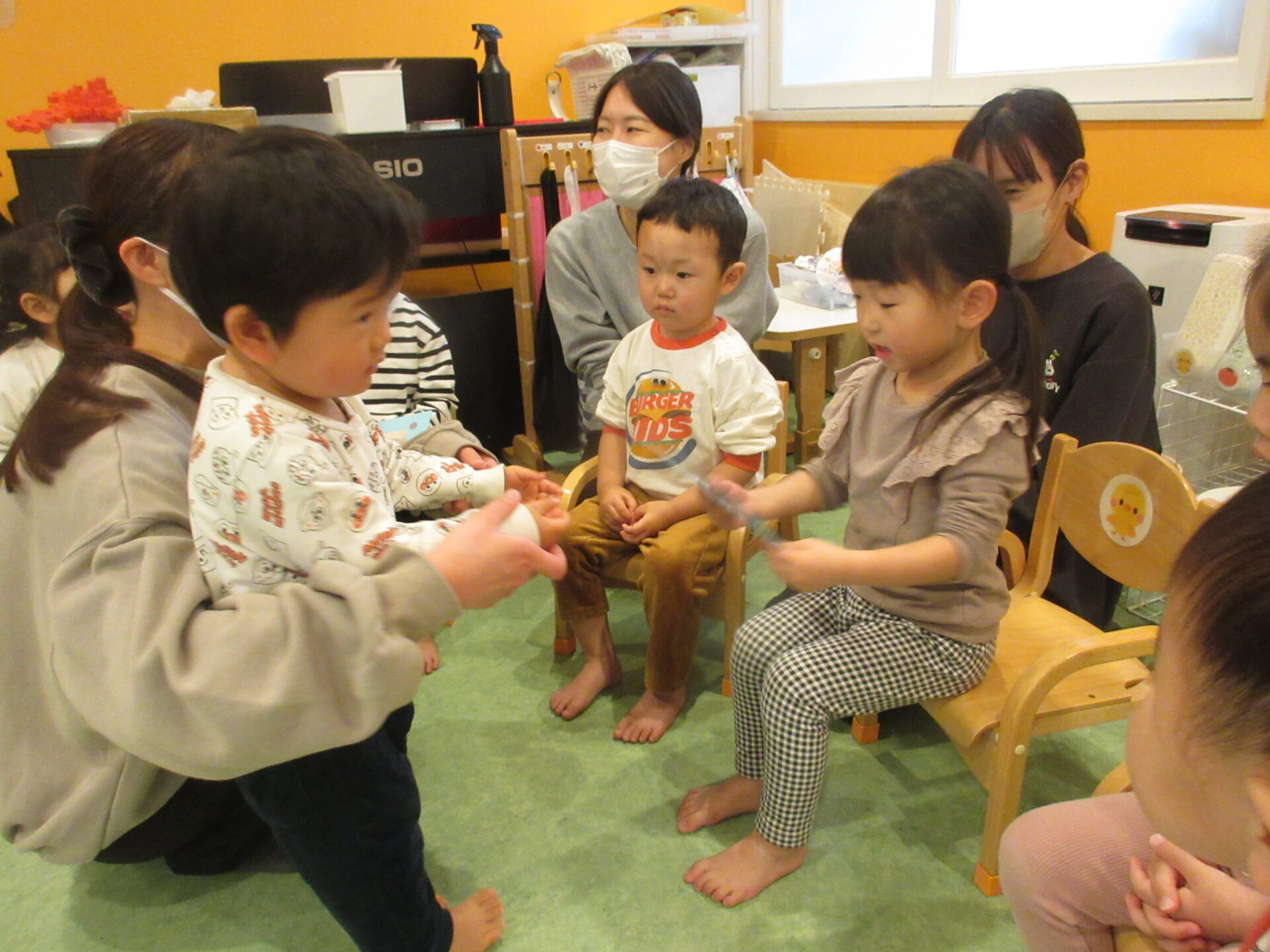 今回はみんなで手を繋いで「ともだちできちゃった~♪」と歌いました。