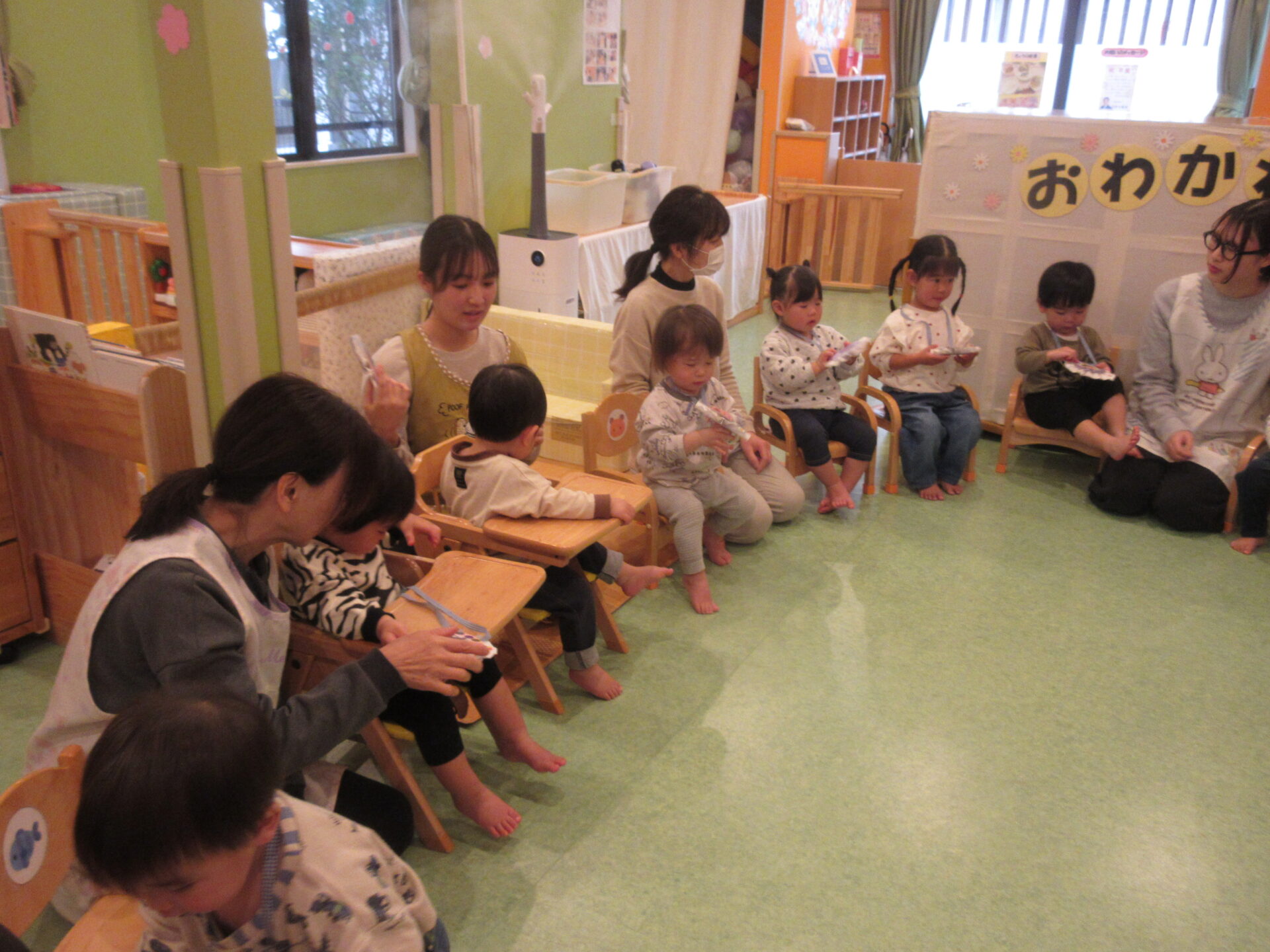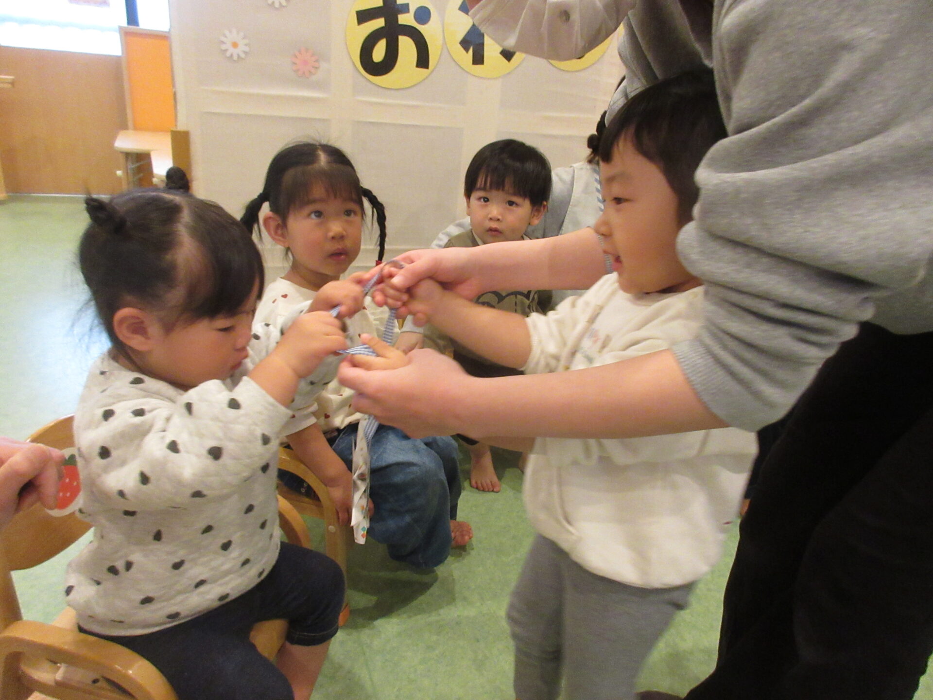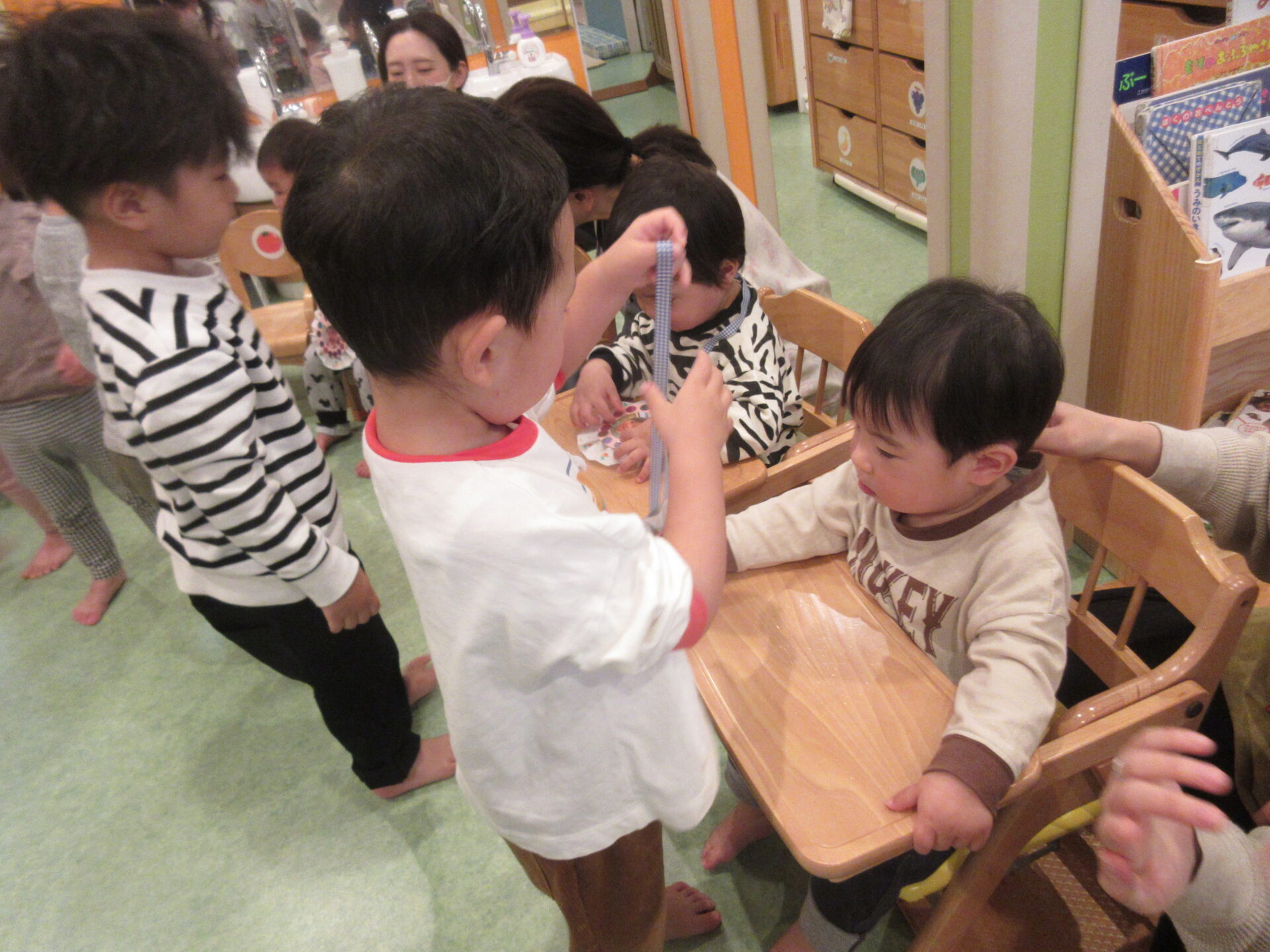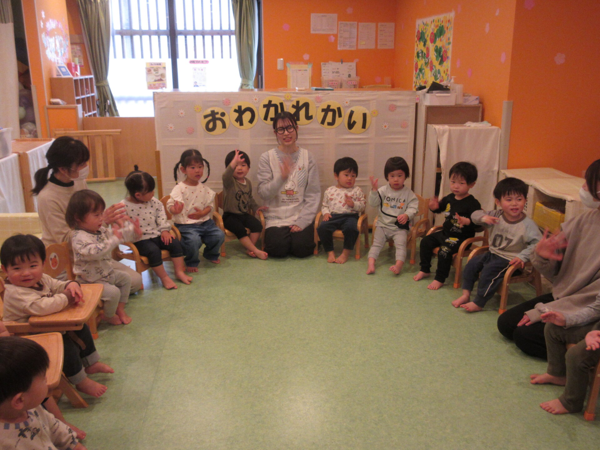 今回はみんなで手を繋いで「ともだちできちゃった~♪」と歌いました。
